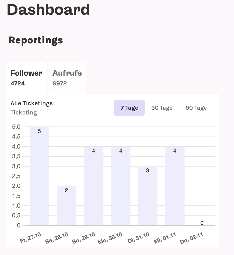 In der Zentrale kannst du einsehen, wie viel Follower & Aufrufe deine Page hat: