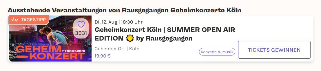 Mit „Pagelistings“ kannst du deine Events mit Artist-, Organizer- und Location-Pages verknüpfen.
