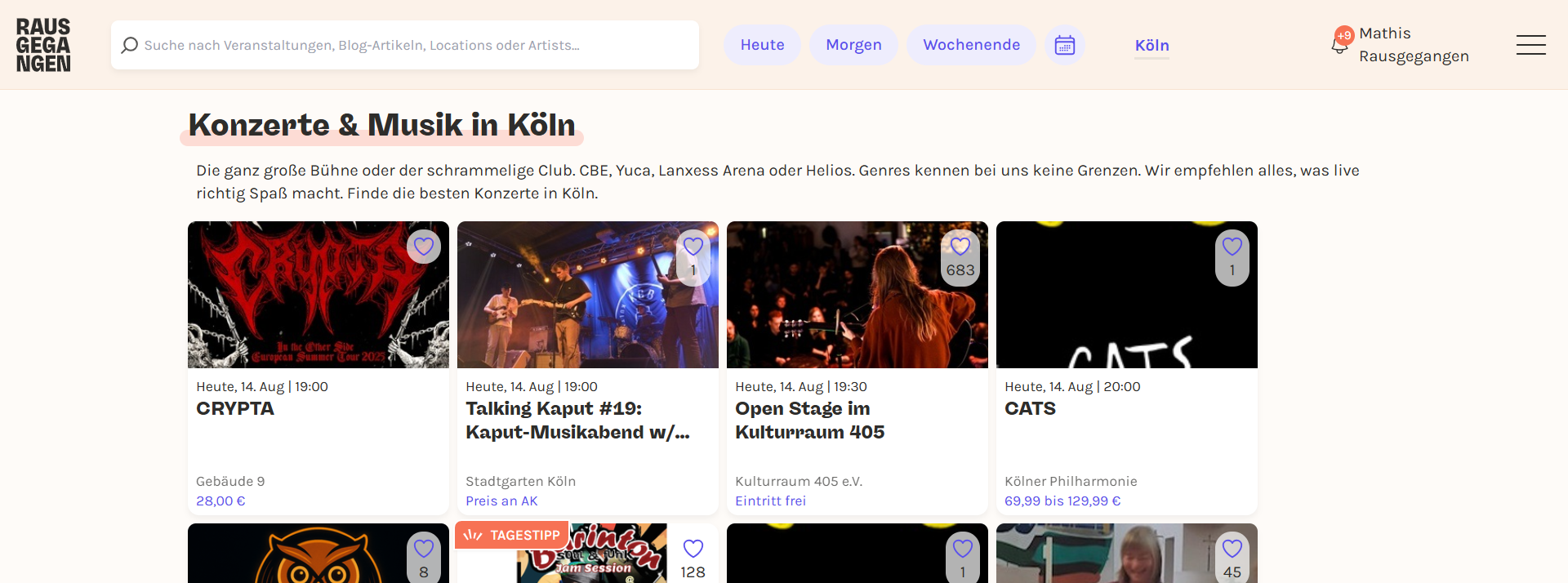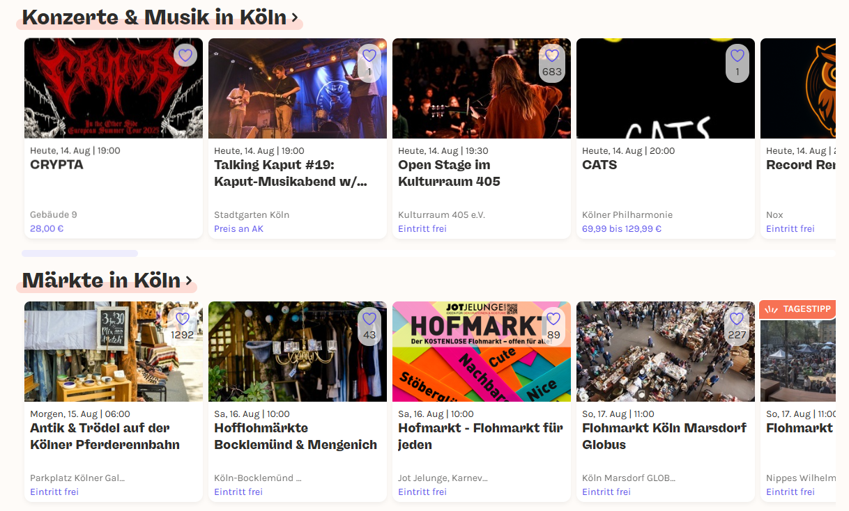 Außerdem können sie auf den Kategorieseiten gezielt alle Events einer Kategorie durchsuchen.
